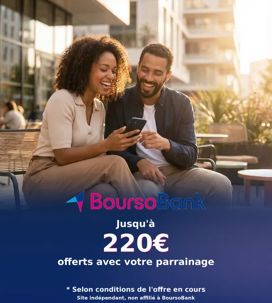 Inscrivez-vous simplement à BoursoBank en cliquant sur mon lien de parrainage ci-dessous et obtenez jusqu'à 220€* à l'ouverture de votre compte.